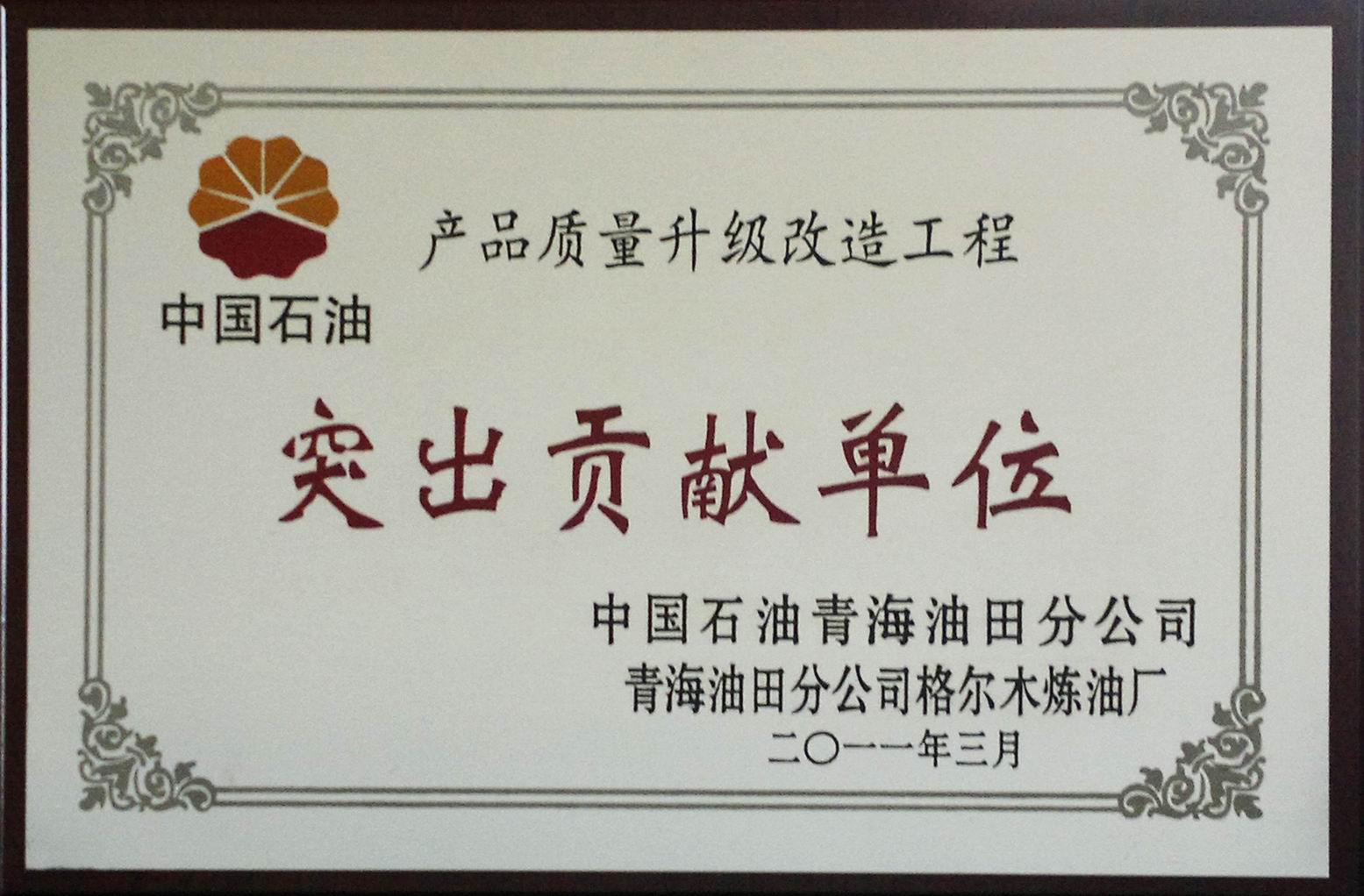 2011年中石油突出貢獻(xiàn)單位(格爾木煉油廠)