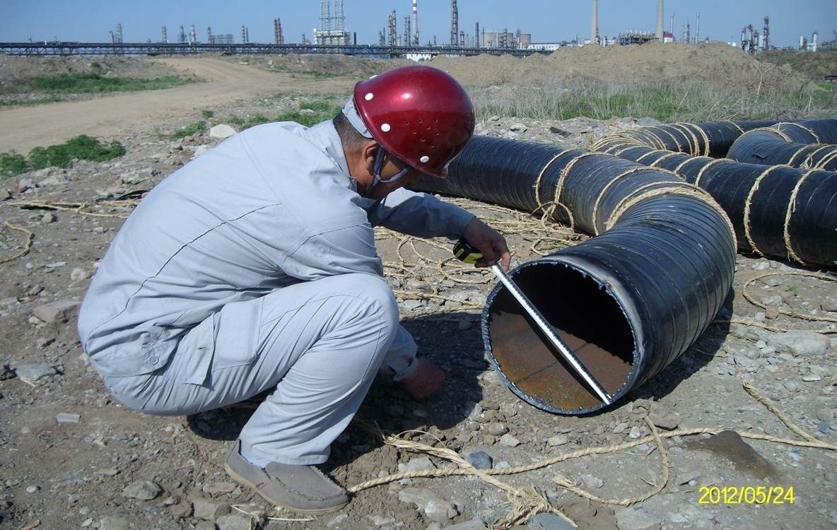 質(zhì)檢人員對(duì)管線焊接和補(bǔ)口進(jìn)行質(zhì)量檢驗(yàn)