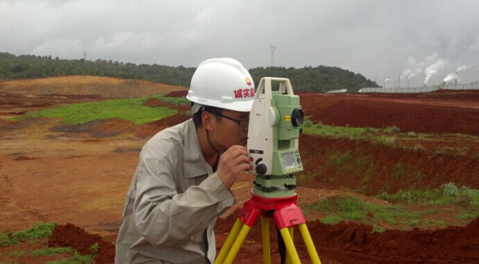 監(jiān)理人員對填方區(qū)高程進行復(fù)測(遼寧誠實拍攝)