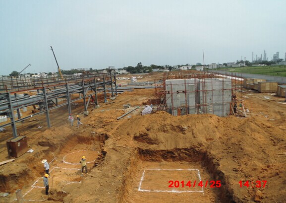 閃蒸罐、含酸氣堿洗塔基礎(chǔ)開挖及壓縮機(jī)基礎(chǔ)澆筑完畢